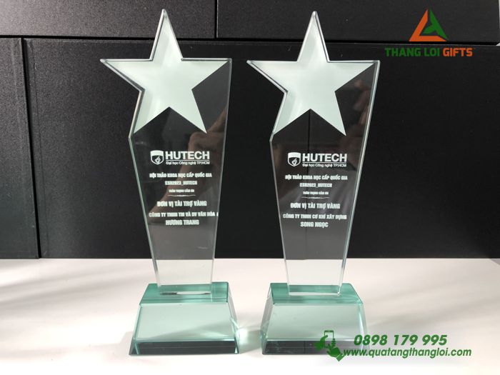 Mẫu Cúp Pha Lê in ấn logo khác: Cúp Pha Lê Ngôi Sao in ấn logo Doanh Nghiệp